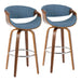 Curvini - Mid-Century Modern Barstool (Set of 2) - Walnut / Blue20.25"W x 21.0"D x 40.0"H - 16.5 lb