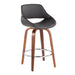 Inviting Design: The LumiSource Fabrico Counter Stool features a wide and welcoming seat, perfect for relaxation. Its curved back and contoured upholstered seat enhance comfort, complemented by flared wood swivel legs for a stylish appearance.