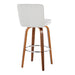 Contemporary Design: The Henry Fixed-Height Bar Stool by LumiSource features a sleek and modern aesthetic with bent wood legs and a chevron tufted upholstery pattern, making it a stylish addition to any dining or bar area.