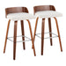 Maya - Mid-Century Modern Fixed Height Barstool With Swivel With Square Footrest (Set of 2) - Walnut / Cream22.0"W x 22.0"D x 35.75"H - 13.5 lb