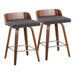 Maya - Mid-Century Modern Fixed Height Counter Stool & Swivel With Square Footrest (Set of 2) - Walnut / Charcoal22.75"W x 22.75"D x 31.5"H - 13.0 lb