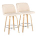 Toriano - Contemporary Fixed Height Counter Stool With Swivel With Round Footrest (Set of 2) - Natural / Cream19.0"W x 17.5"D x 35.5"H - 14.0 lb