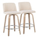 Toriano - Contemporary Fixed Height Counter Stool With Swivel And Round Footrest (Set of 2) - Whitewashed / Cream19.0"W x 17.5"D x 35.5"H - 14.0 lb