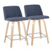 Toriano - Contemporary Fixed Height Counter Stool With Swivel With Square Footrest (Set of 2) - Natural / Blue19.0"W x 17.5"D x 33.75"H - 14.0 lb