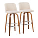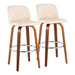 Toriano - Mid-Century Modern Fixed Height Barstool With Swivel And Round Footrest (Set of 2) - Walnut / Cream