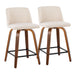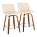 Toriano - Mid-Century Modern Fixed Height Counter Stool With Swivel & Square Footrest (Set of 2) - Walnut / Cream