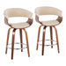 Vintage Mod - Mid-Century Modern Fixed Height Counter Stool With Swivel With Round Footrest (Set of 2) - Walnut / Cream20.75"W x 23.25"D x 37.0"H - 17.0 lb