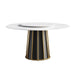 59.05" Modern Artificial Stone Round Panel Metal Iron Base Dining Table, Can Accommodate 8 People Artificial Stone Turntable (Not Including Chairs) - White / Black