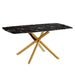 Luxurious Marble Patterned Dining Table With en Metal Fork Legs, Tempered Glass Top - Black / Gold63.0"W x 35.4"D x 30.0"H - 94.03 lb