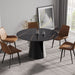 Modern Artificial Stone Round Carbon Steel Base Dining Table, Can Accommodate 6 People - Black