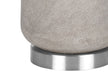 • Modern Design: Features a subtly textured grey resin cylinder base with polished silver metal footing and an ivory linen drum shade topped with a silver finial.