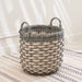 Round Resin Woven Wicker Multi Use Storage Basket With Handles - Cream / Gray