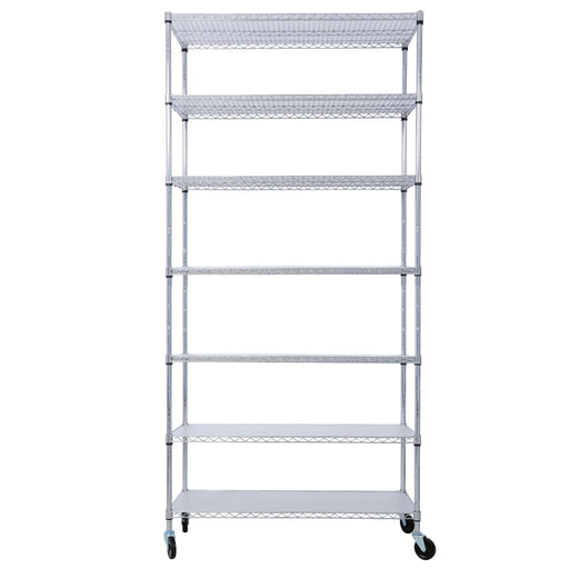 7 Tier Metal Shelf Wire Shelving Unit, 2450Lbs Heavy Duty Adjustable Storage Rack With Wheels & Shelf Liners For Closet Kitchen Garage Basement Commercial Shelving