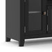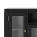 • Features a large centrally located open area with one (1) flip down drawer, one (1) pull out drawer as well as four (4) storage spaces with tempered glass doors