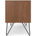 - Features two (2) side cabinets with two (2) adjustable shelves and soft closing hinges with open central space with one (1) shelf and four (4) black iron hairpin legs