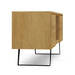 - Features two (2) Doors with discreet hand pulls, open central area with adjustable shelving and solid metal angled legs in a gold finish for reliable support
