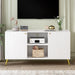 Modern TV Stand For TVs Up To 55", Entertainment Center Media Console, Adjustable Shelf, Metal Legs, Handles And Anti-Tip Device For Living Room - White
