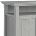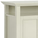 • Transitional design includes tapered legs, panel framed door fronts, and antique bronze round decorative knobs