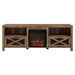 Industrial Farmhouse Metal Mesh Drop Down X Door 70" Fireplace TV Stand For 80" TVs - Rustic Oak
