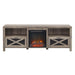 Industrial Farmhouse Metal Mesh Drop Down X Door 70" Fireplace TV Stand For 80" TVs - Gray Wash