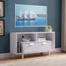 • Design & Structure: The modern TV stand features a sleek design with two U-legs providing a stable base. It is constructed from particle board, offering a contemporary look in a clean white finish.