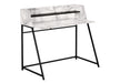 Stylish Design: The computer desk features a marble-look finish with a small hutch and a long shelf in a contrasting finish, adding a modern touch to your home office.