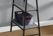 Industrial Design: This computer desk features an industrial style with 4 open shelves supported by sawhorse-style legs in a sleek metal finish, giving it a modern and robust look.