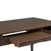 • Features a flip down pull-out keyboard tray and two (2) notched handle drawers with metal drawer glides