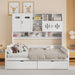 Full Size Wooden Daybed With Twin Size Trundle, And All In One Cabinet And Shelf - White