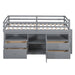 Twin Size Loft Bed With 4 Drawers, Underneath Cabinet And Shelves - Gray