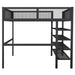This metal loft bed with storage space is made from sturdy metal and features a clean-cut silhouette that complements any room decor. It includes 4-tier open shelves and a storage shelf beside the bed guardrail, making it easy to grab items without getting out of bed. With this collection, you can transform any space into a workstation, reading nook, or lounge area.