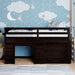 Crafted with high grade manufactured pinewood, enjoy the Loft bed in the shades espresso, gray and to match the color scheme of any room. Designed with a loft structure, enjoy the space underneath used to house storage drawers. Three wide drawers provide plenty of storage options for you to help keep their space tidy and organized. The built-in two rung ladder provides easy access to the d bed featuring length safety guardrails.