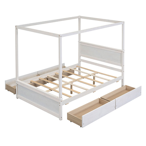 Modern Design: This wooden canopy bed with a brushed-effect finish features a sleek exterior profile, built-in headboard and footboard, and clean l...