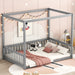 Full Size Canopy Frame Floor Bed With Fence, Guardrails - Gray78.2"W x 57.0"D x 58.3"H - 43.0 lb