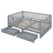 Full Size Daybed With Fence Guardrails And 2 Drawers - Gray78.1"W x 55.8"D x 34.5"H - 128.0 lb