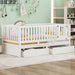 Full Size Daybed With Fence Guardrails And 2 Drawers, Split Into Independent Floor Bed & Daybed - Natural78.1"W x 55.8"D x 34.5"H - 128.0 lb