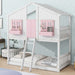 Twin Over Twin House Bunk Bed With Roof, Window, Window Box, Door, With Safety Guardrails And Ladder - Pink / White81.7"W x 57.8"D x 86.9"H - 134.5 lb