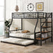 Twin Over Full Size Metal Bunk Bed With Trundle And Storage Staircase - Black