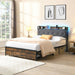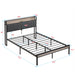 Full Size Metal Platform Bed Frame With Upholstery Storage Headboard And USB Liner - Beige / Black81.5"W x 53.9"D x 39.0"H - 49.5 lb