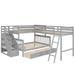 Twin Over Full L Shaped Bunk Bed & 3 Drawers, Ladder And Staircase - Gray118.3"W x 96.8"D x 61.2"H - 302.55 lb