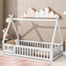 Full Tent-Shaped Floor Bed, With Guardrails, Slats, Door - White