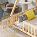 Full Tent-Shaped Floor Bed, With Guardrails, Slats, Door - Natural