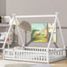 Twin Tent-Shaped Floor Bed, With Guardrails, Slats, Door - White