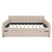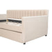 Full Size Upholstered Daybed With Trundle And Slat Support - Beige