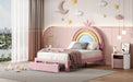 Full Size Upholstered Rainbow Design Bed, Velvet Princess Platform Bed With Storage Drawer, No Box - Spring Needed - Colorful / Pink77.5"W x 55.5"D x 47.0"H - 70.0 lb