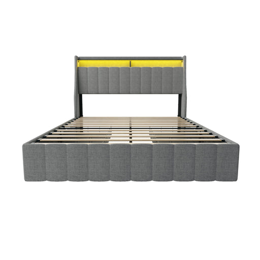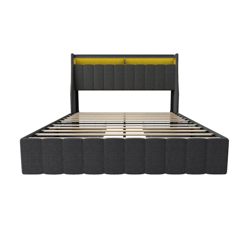 LED Lighting: Enhance your bedroom ambiance with integrated LED lights, controlled via remote for easy use. Storage Headboard: The headboard featu...
