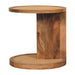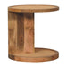 - Artisan Furniture Solid Wood Close-knit Corner End Table - This end table is the perfect addition to any room. Suitable for narrow hallways as an ideal place to store small items like keys and address books. It is constructed from 100% solid mango wood and has a lovely oak-ish finish with a close-knit pattern on the top and bottom shelf.