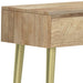 - Features two notched handle soft close drawers and four gold finished metal legs