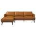 • High-Quality Materials: Crafted from genuine leather and solid eucalyptus wood, this sectional promises durability and luxury. The leather finish enhances its sophisticated appeal, while the walnut wood elements add warmth and richness.