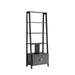 Design and Structure: This modern bookcase features a sleek design with four open shelves and a two-door cabinet, offering versatile storage solutions in a stylish black and grey color scheme.